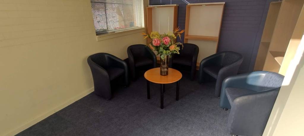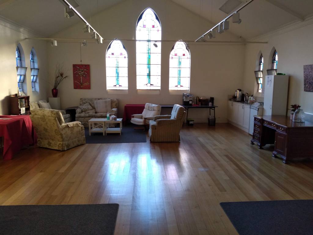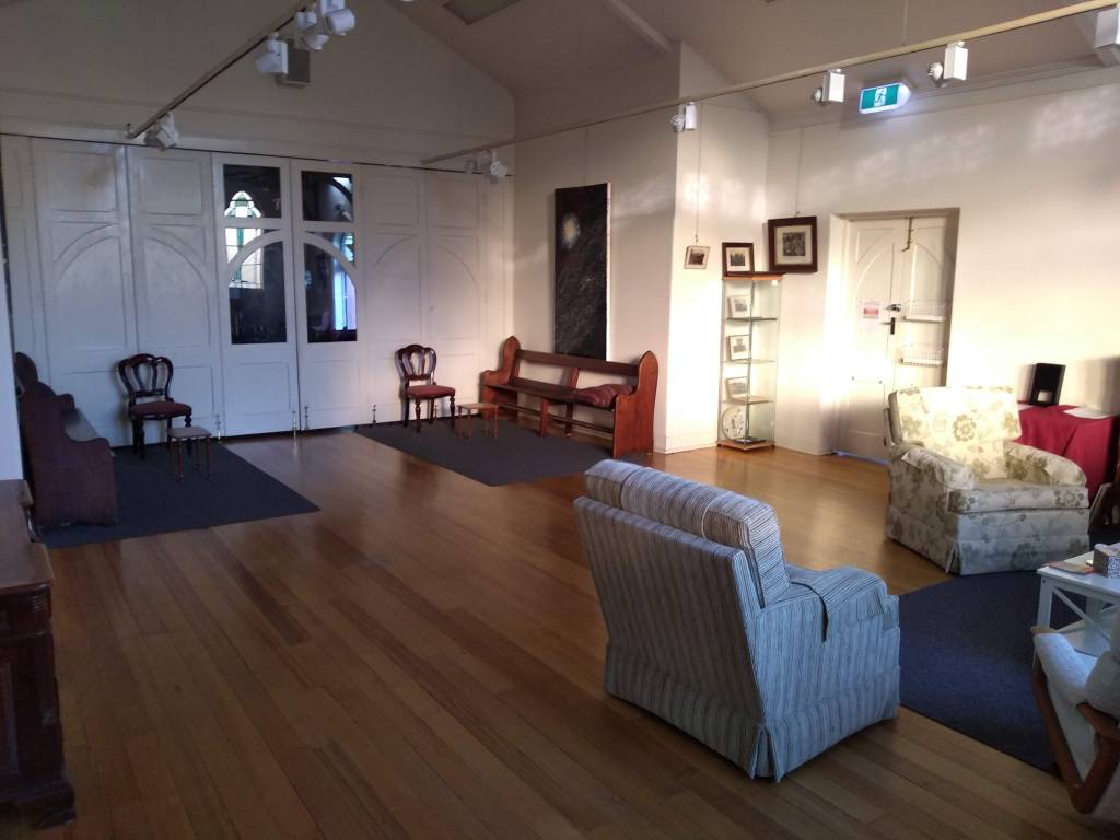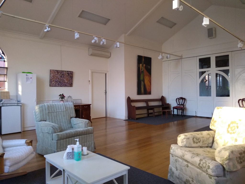 The Gallery is a warm and inviting space, attached to the main church sanctuary, with soft seating and a flexible layout suitable for small groups, meetings and small events. As the space has been an art gallery in the past, it is also set up for art exhibitions and launches. It is air conditioned and includes a small kitchenette and fridge, as well as an accessible toilet.