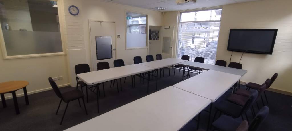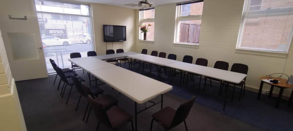 This room can be configured for a range of different requirements, and can seat up to 20 people at tables, or 30 with auditorium seating. The room is air conditioned and includes a large whiteboard and digital projector. It is ideal for smaller forums, workshops, consultations and group events. It also includes access to a small kitchenette.